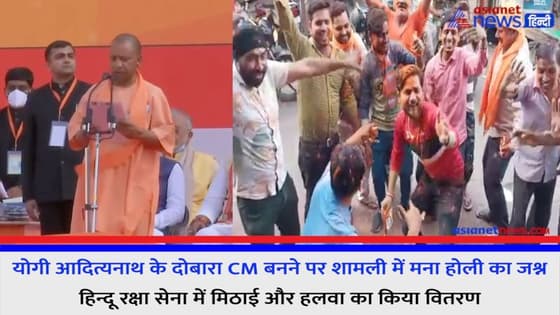 योगी के दोबारा CM बनने पर शामली में मना होली का जश्न, हिन्दू रक्षा सेना ने मिठाई और हलवा का किया वितरण