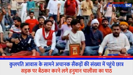 कुलपति आवास के सामने अचानक सैंकड़ों की संख्या में पहुंचे छात्र, सड़क पर बैठकर करने लगे हनुमान चालीसा का पाठ
