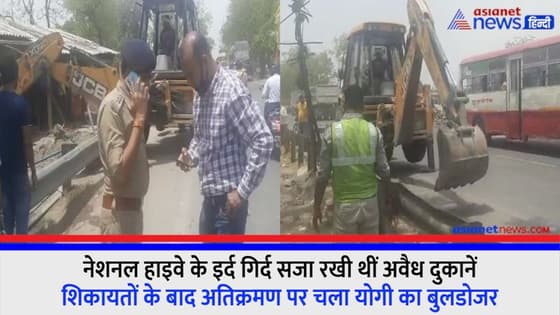 नेशनल हाइवे के इर्द गिर्द सजा रखी थीं अवैध दुकानें, शिकायतों के बाद अतिक्रमण पर चला योगी का बुलडोजर