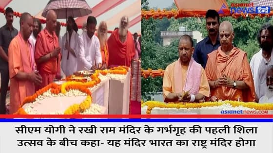 अयोध्या में सीएम योगी ने रखी राममंदिर के गर्भगृह की पहली शिला, कहा- यह मंदिर भारत का राष्ट्र मंदिर होगा