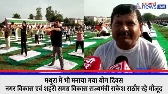 मथुरा में भी मनाया गया योग दिवस, नगर विकास एवं शहरी समग्र विकास राज्यमंत्री राकेश राठौर रहे मौजूद