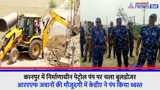 कानपुर में निर्माणाधीन पेट्रोल पंप पर चला बुलडोज़र, आरएएफ जवानों की मौजूदगी में केडीए ने पंप किया ध्वस्त