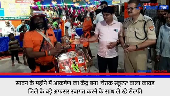 सावन के महीने में आकर्षण का केंद्र बना 'चेतक स्कूटर' वाला कावड़, जिले के अफसर स्वागत करने के साथ ले रहे सेल्फी