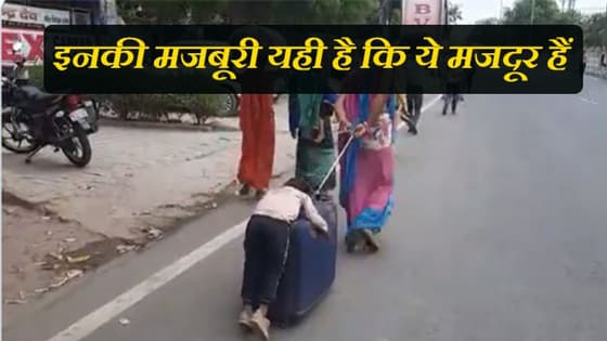 वीडियो डेस्क। लॉकडाउन के बीच एक बच्चा पैदल चलने से थककर सूटकेस पर सोया हुआ है, उसकी मां उस सूटकेस को सड़क पर घसीटते हुए ले जा रही है। ये महिला उत्तर प्रदेश के आगरा से होते हुए अपने घर जा रहे