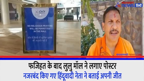 विवादों के बाद लखनऊ लुलु मॉल में लगाए गए पोस्टर, नजरबंद किए गए हिंदूवादी नेता ने बताई अपनी जीत