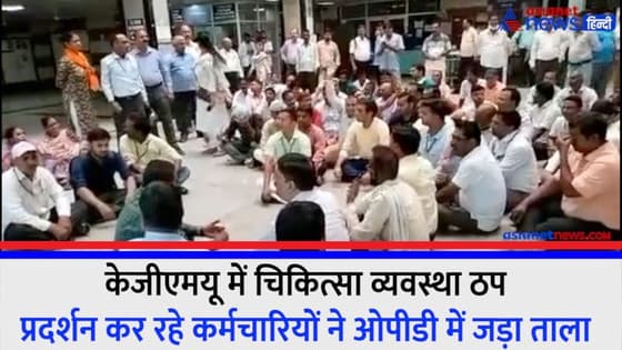 केजीएमयू में चिकित्सा व्यवस्था ठप, प्रदर्शन कर रहे कर्मचारियों ने ओपीडी में जड़ा ताला