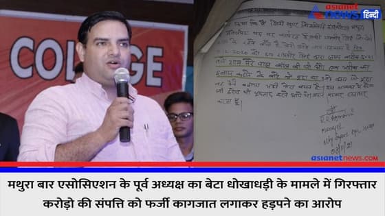 मथुरा: बार एसोसिएशन के पूर्व अध्यक्ष का बेटा धोखाधड़ी के मामले में गिरफ्तार किया गया। आदित्य शुक्ला नाम के युवक की गिरफ्तारी हुई है। आरोपी बेटे के ऊपर आकरोड़ो की संपत्ति को फर्जी कागजात लगाकर हड़पने का आरोप लगाया है। करोड़ो की संपत्ति को फर्जी कागजात लगाकर हड़पने के मामले में गिरफ्तार किया है। एसएसपी के मामले में हस्तक्षेप के मुकदमा दर्ज किया गया है। निजी हॉस्पिटल का फर्जी रिकार्ड बना दिखाकर कब्जाई संपत्ति। आधा दर्जन के करीब लोगों के खिलाफ़ हुआ मुकदमा दर्ज हुआ है।