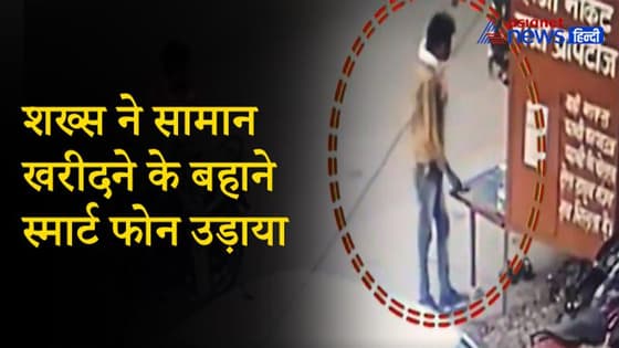 सामान खरीदने के बहाने दुकानदार को भटकाया और उड़ा दिया मोबाइल फोन, CCTV में कैद लूट