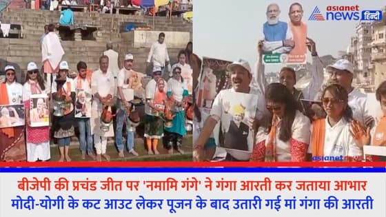 मोदी-योगी के कटआउट लेकर पूजन के साथ उतारी मां गंगा की आरती, 'नमामि गंगे' ने गंगा आरती कर जताया आभार