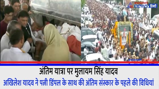 अंतिम यात्रा पर मुलायम सिंह यादव, अखिलेश ने पत्नी डिंपल के साथ की अंतिम संस्कार के पहले की विधियां