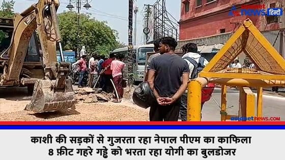 काशी की सड़कों से गुजरता रहा नेपाल पीएम का काफिला, 8 फ़ीट गहरे गड्ढे को भरता रहा योगी का बुलडोजर