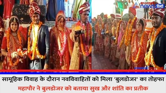 सामूहिक विवाह के दौरान नवविवाहितों को मिला 'बुलडोजर' का तोहफा, महापौर ने बताया सुख और शांति का प्रतीक