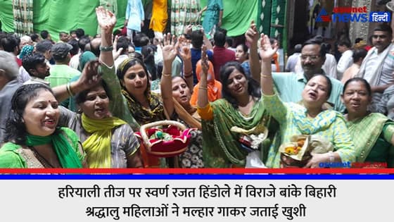 हरियाली तीज पर स्वर्ण रजत हिंडोले में विराजे बांके बिहारी, श्रद्धालु महिलाओं ने मल्हार गाकर जताई खुशी