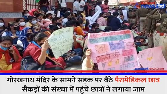 गोरखनाथ मंदिर के सामने सड़क पर बैठे पैरामेडिकल छात्र, सैकड़ों की संख्या में पहुंचे छात्रों ने लगाया जाम