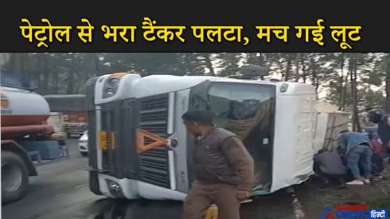 पेट्रोल से भरा टैंकर पलटा, ड्राइवर की जान बजाने के बजाए लोगों ने मचा दी तेल की लूट