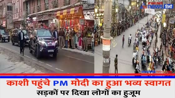 काशी पहुंचे PM मोदी का हुआ भव्य स्वागत, सड़कों पर दिखा लोगों का हुजूम, देखें वीडियो