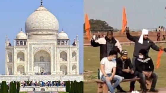 वीडियो डेस्क। सोशल मीडिया पर आगरा के ताजमहल के अंदर का एक वीडियो वायरल हो रहा है। जहां कुछ लड़कों ने ताजमहल परिसर में भगवा झंड़ा फहराया और शिव चालीसा का पाठ किया है। मामले में हिंदू जागरण मंच के जिलाध्यक्ष और उसके साथ तीन युवकों को गिरफ्तार किया गया है।