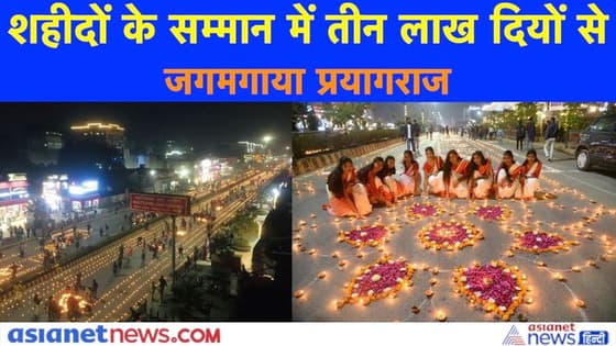 शहीदों के सम्मान में तीन लाख दीयों से रोशन हुआ प्रयागराज, देखें वीडियो