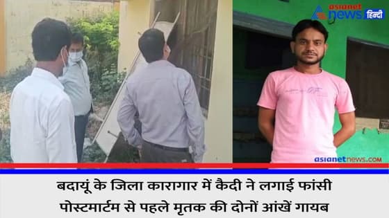 बदायूं जिला कारागार में एक कैदी ने फांसी लगाकर मौत को गले लगा लिया। वहीं, आज सुबह जिला अस्पताल की मोर्चरी में रखे शव की दोनों आंखें गायब देख अस्पताल प्रशासन के हाथ पांव फूल गए। मृतक की दोनों आंखें कैसे गायब हुईं इसको लेकर कई सवाल उठ रहे हैं। बरहाल इस सनसनीखेज वारदात को लेकर डीएम दीपा रंजन ने कमेटी गठित कर जांच के आदेश दिए हैं।