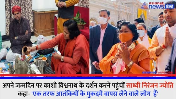 काशी विश्वनाथ के दर्शन करने पहुंचीं साध्वी निरंजन ज्योति, कहा-एक तरफ आतंकियों के मुकदमे वापस लेने वाले लोग हैं