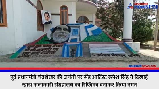 चंद्रशेखर के गृह जनपद बलिया के रहने वाले सैंड आर्टिस्ट रूपेश सिंह ने अपने अनोखे अंदाज में पूर्व प्रधानमंत्री चंद्रशेखर को याद किया। पीएम मोदी ने पिछले दिनों प्रधानमंत्री संग्रहालय का उद्घाटन किया। इसी संग्रहालय का रिप्लिका बनाकर सैंड आर्टिस्ट रूपेश सिंह ने पूर्व प्रधानमंत्री के प्रति अपनी भावनाओं का इजहार किया।