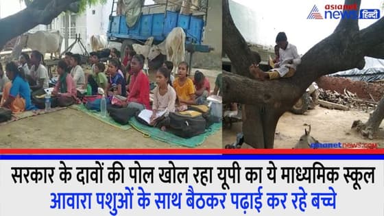 सरकार के दावों की पोल खोल रहा यूपी का ये माध्यमिक स्कूल, आवारा पशुओं के साथ बैठकर पढ़ाई कर रहे बच्चे
