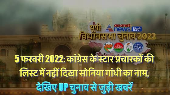 5 फरवरी 2022: कांग्रेस के स्टार प्रचारकों में नहीं दिखा सोनिया गांधी का नाम, देखिए UP चुनाव से जुड़ी खबरें