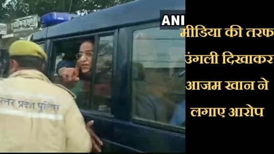 पुलिस की गाड़ी में आजम खान ने कैमरे को उंगली दिखा कर कहा-आतंकवादियों जैसा हो रहा है व्यवहार
