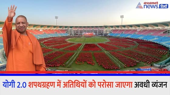 प्राप्त जानकारी के अनुसार इस आयोजन में अलग-अलग हिस्सों से शामिल होने आ रहे अतिथियों को भोजन में अवधी व्यंजन परोसने की तैयारी की गई है। यहां मेहमानों के आगमन से लेकर उनके प्रस्थान तक सभी तैयारियों को पूर्ण कर लिया गया है। अतिथियों की सुविधाओं को ध्यान में रखकर ही पूरी कार्ययोजना को तैयार किया गया है। इसके अनुसार शपथग्रहण से पूर्व स्टेडियम में प्रवेश करने पर ही सभी अतिथियों को मिठाई का पैकेट व पानी देने की व्यवस्था रहेगी। इसके अलावा उनके लंच पैकेट का भी इंतजाम किया गया है।