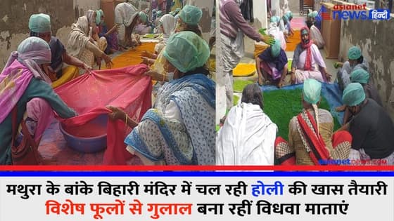 मथुरा के बांके बिहारी मंदिर में चल रही होली की खास तैयारी, विशेष फूलों से गुलाल बना रहीं विधवा माताएं