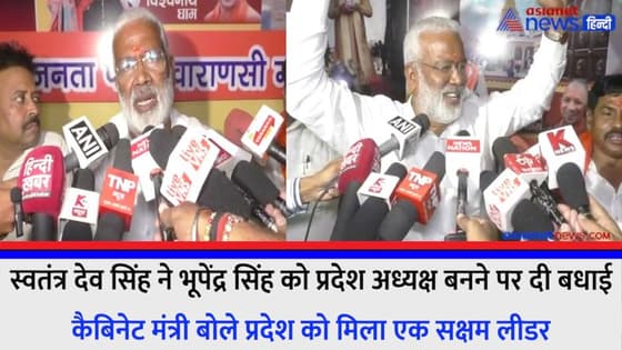 वाराणसी: भारतीय जनता पार्टी की ओर से भूपेंद्र सिंह चौधरी को प्रदेश अध्यक्ष बनाया गया है। उनके प्रदेश अध्यक्ष बनते ही बधाई और शुभकामनाएं देने का सिलसिला जारी हो गया है। इसी बीच पूर्व प्रदेश अध्यक्ष और कैबिनेट मंत्री स्वतंत्र देव सिंह ने भूपेंद्र सिंह को प्रदेश अध्यक्ष बनने पर बधाई दी है। स्वतंत्र देव सिंह ने भूपेंद्र सिंह को संगठन को मजबूत करने शुभकामनाएं भी दी है। स्वतंत्र देव सिंह ने कहा कि प्रदेश को एक सक्षम नेतृत्व करने वाला लीडर मिला है। भूपेंद्र सिंह के नेतृत्व में सरकार और संगठन दोनों ही अच्छी तरह से चलेंगे। इसी के साथ ही स्वतंत्र देव सिंह ने कहा कि वर्ष 2024 को लेकर हमारे सामने कोई चुनौती नहीं है और बाढ़ को लेकर भी हमारी सभी तैयारियां पूरी हैं। प्रदेश अध्यक्ष बनाए जाने की रेस में भूपेंद्र सिंह चौधरी का नाम सबसे आगे चल रहा था। जिसके बाद बीजेपी के राष्ट्रीय अध्यक्ष जेपी नड्डा ने गुरूवार को उनके नाम का ऐलान कर दिया।