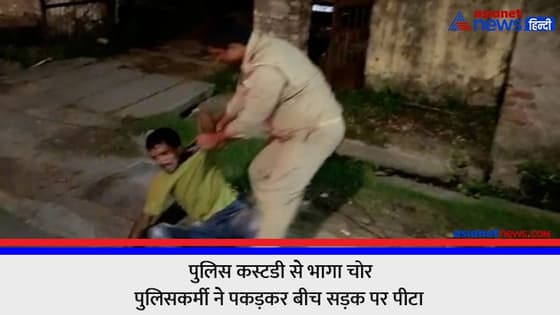 मुरादाबाद में कस्टडी से फरार हुआ चोर, पकड़े जाने के बाद पुलिसकर्मी ने बीच सड़क पर किया ऐसा हाल