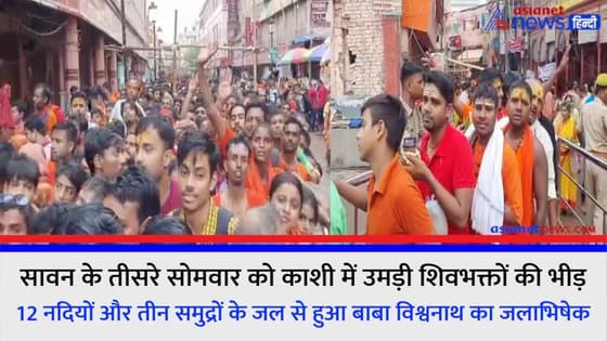 सावन महीने का तीसरा सोमवार को वाराणसी में बाबा विश्वनाथ का अभिषेक देश की 12 नदियों और तीन समुद्रों के जल से किया जा रहा है। आज बाबा विश्वनाथ अर्धनारीश्वर स्वरूप में भक्तों को दर्शन दे रहे हैं। इससे पहले भोर में पारंपरिक तरीके से बाबा विश्वनाथ की मंगला आरती हुई।