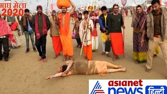 माघ मेले में मौनी बाबा का यह देखिए हठ योग