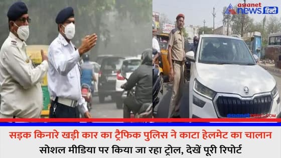 सड़क किनारे खड़ी कार का ट्रैफिक पुलिस ने काटा हेलमेट का चालान, सोशल मीडिया पर किया जा रहा ट्रोल