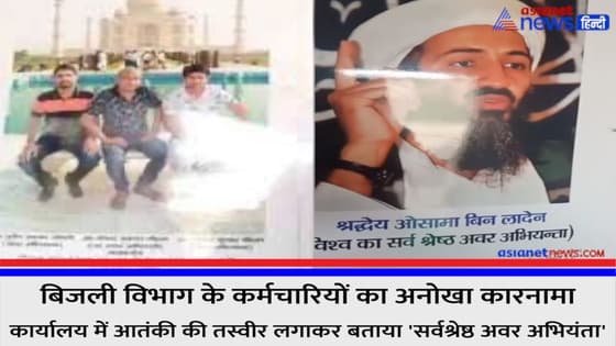 बिजली विभाग के कर्मचारियों का अनोखा कारनामा, कार्यालय में आतंकी की फोटो लगाकर बताया 'सर्वश्रेष्ठ अवर अभियंता'