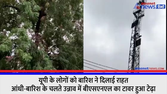 यूपी के लोगों को बारिश ने दिलाई राहत, आंधी-बारिश के चलते उन्नाव में बीएसएनएल का टावर हुआ टेढ़ा