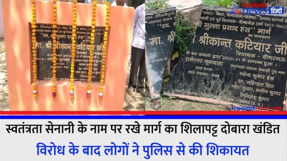 स्वतंत्रता सेनानी के नाम पर रखे मार्ग का शिलापट्ट दोबारा खंडित, विरोध के बाद स्थानीय लोगों ने लगाया बड़ा आरोप