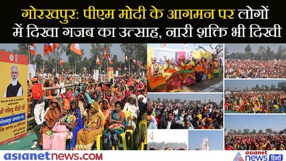 गोरखपुर में PM Modi, लोगों में दिखा गजब का उत्साह... नारी शक्ति का दिखा हुजूम, देखें Video