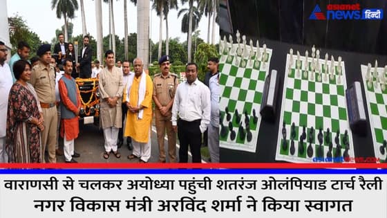वाराणसी से चलकर अयोध्या पहुंची शतरंज ओलंपियाड टार्च रैली, नगर विकास मंत्री अरविंद शर्मा ने किया स्वागत