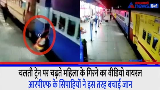 चलती ट्रेन पर चढ़ते समय महिला के गिरने का वीडियो वायरल, आरपीएफ के सिपाहियों ने इस तरह बचाई जान