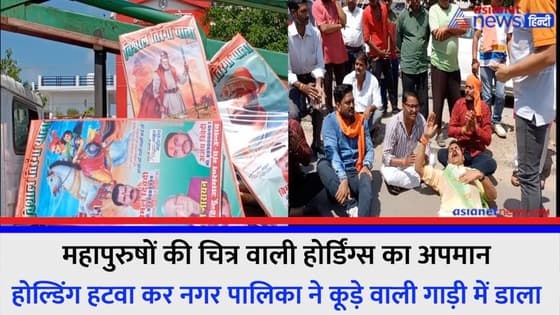 शहर भर में कई महापुरुषों की चौराहे, प्रमुख मार्गों पर होर्डिंग लगवाई। आज सुबह पालिका के कर्मियों ने होर्डिंग उतार कर कूड़ा गाड़ी में ले जाकर महापुरुषों का अपमान किया है। जिसके विरोध में बीच सड़क पर हिजमा ने प्रदर्शन शुरू कर पालिका मुर्दाबाद के नारे लगाए हैं।