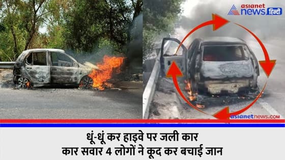 धूं-धूं कर हाइवे पर अचानक जलने लगी कार, 4 लोगों ने कूद कर बचाई जान