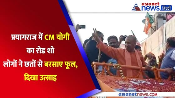 प्रयागराज में CM योगी के रोड शो में लोगों ने छतों से बरसाए फूल, कार्यकर्ताओं में दिखा जोश