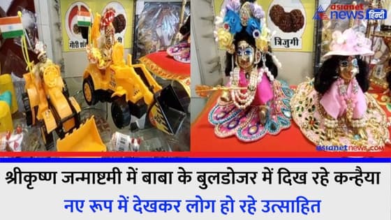श्रीकृष्ण जन्माष्टमी में बाबा के बुलडोजर में दिख रहे कन्हैया, नए रूप में देखकर लोग हो रहे उत्साहित