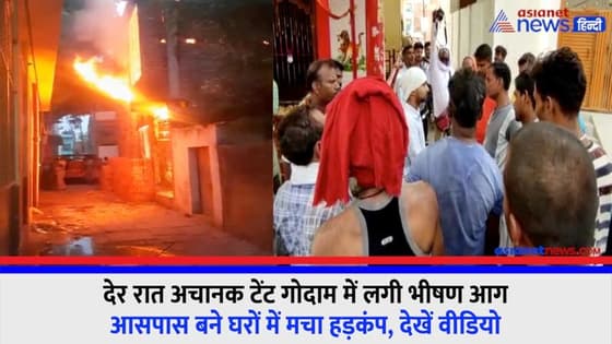 देर रात अचानक टेंट गोदाम में लगी भीषण आग, आसपास बने घरों में मचा हड़कंप, देखें वीडियो