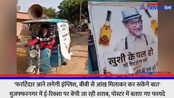 यूपी के मुजफ्फरनगर का एक वीडियो सोशल मीडिया पर जमकर वायरल हो रहा है। इस वीडियो में ई-रिक्शा पर शराब बेंची जा रही है और माइक के जरिए शराब पीने के फायदे भी बताए जा रहे हैं।