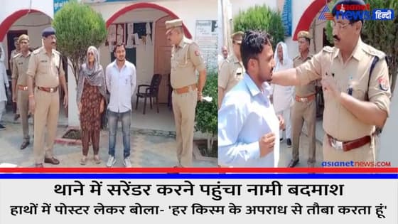 थाने में सरेंडर करने पहुंचा नामी बदमाश, हाथों में पोस्टर लेकर बोला- 'हर किस्म के अपराध से तौबा करता हूं'