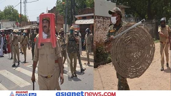 उन्नाव: सिर पर स्टूल और बांस की टोकरी, उपद्रवियों से यूं मुकाबला करने पहुंची यूपी पुलिस