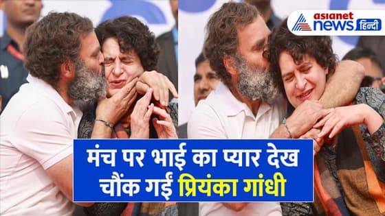 अचानक मंच पर Rahul Gandhi का प्यार देख चौंक गईं Priyanka Gandhi